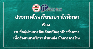 จัดซื้อจัดจ้าง ประกาศโรงเรียนเขวาไร่ศึกษา เรื่อง ประกาศรายชื่อผู้มีสิทธิ์สอบประเมินสมรรถนะ เพื่อเลือกสรรเป็นลูกจ้างชั่วคราว เพื่อจ้างเหมาบริการ ตำแหน่ง นักการภารโรง 30/08/2025 admin
