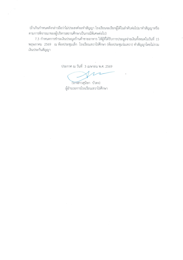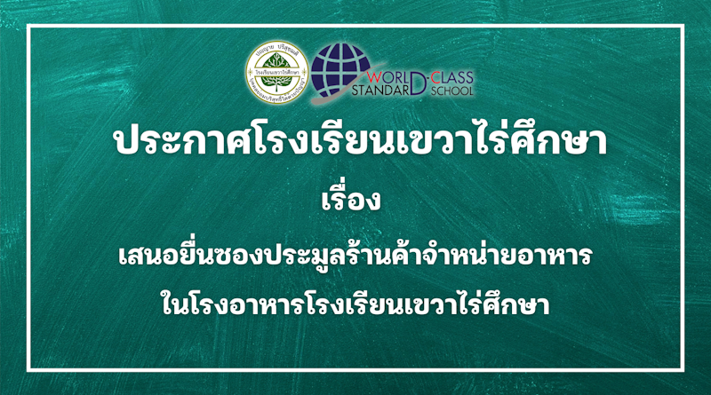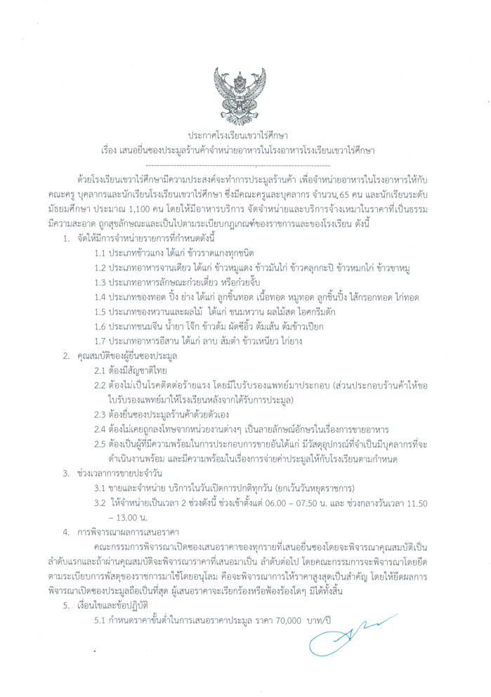 จัดซื้อจัดจ้าง ประกาศโรงเรียนเขวาไร่ศึกษา เรื่อง เสนอยื่นซองประมูลร้านค้าจำหน่ายอาหารในโรงอาหารโรงเรียนเขวาไร่ศึกษา 03/04/2026 admin